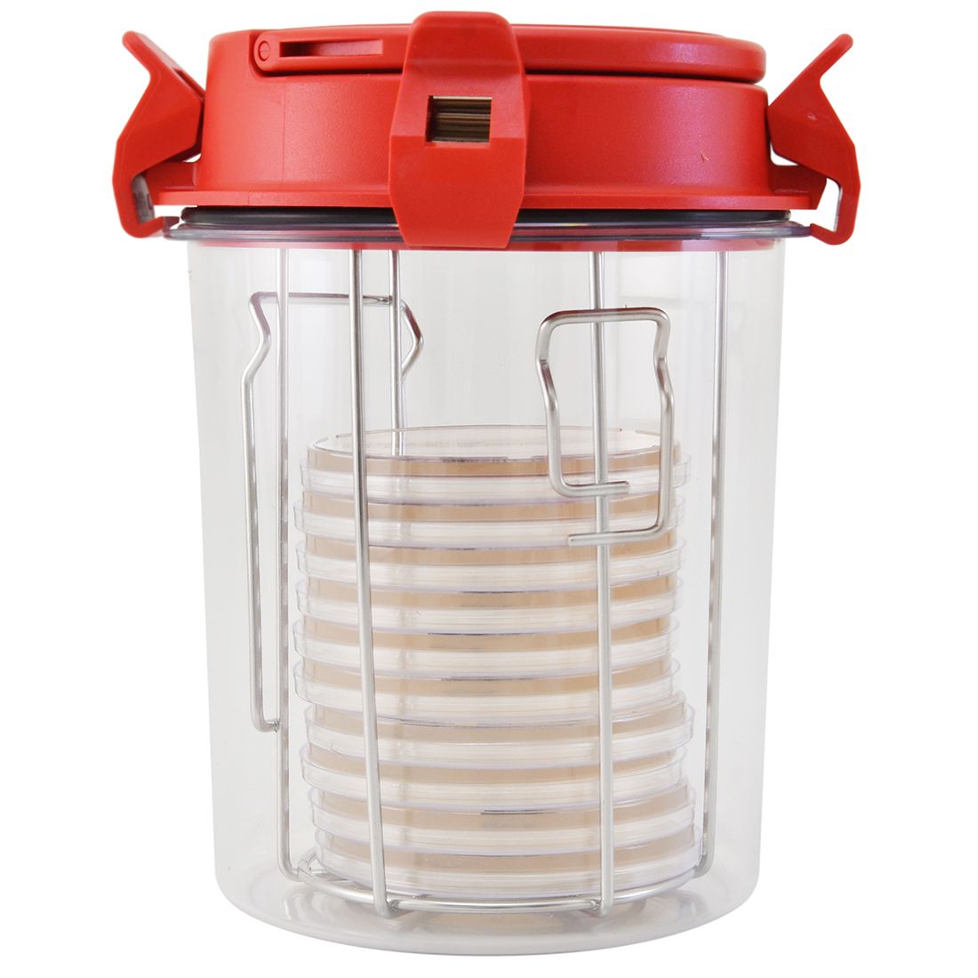 The AnaeroJar 2.5L Jar is a sturdy, low profile, space-saving jar that can be used for anaerobic, microaerophilic, or CO₂ cultures.
