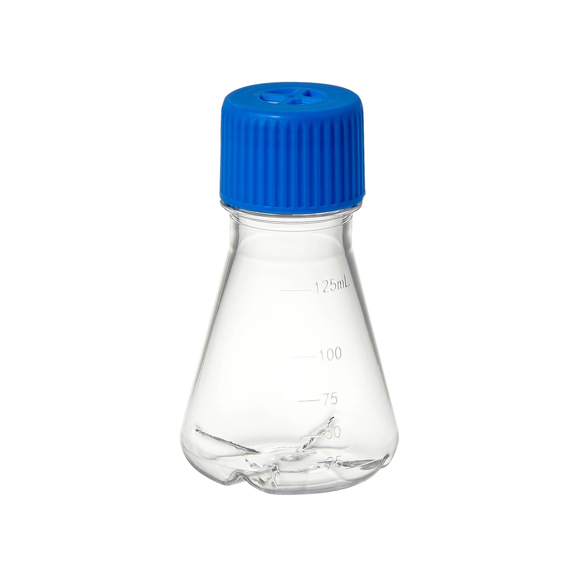 PSLabware Erlenmeyer Shaker Flasks are made of polycarbonate, PETG or styrene/butadiene (Jumbo Flasks only). The polypropylene screw caps are vented with 0.2 µm membranes to increase air transmission and enhance cell growth. The mouth size conforms with the international SBS standard, for quick, secure connection to bioreactor equipment.