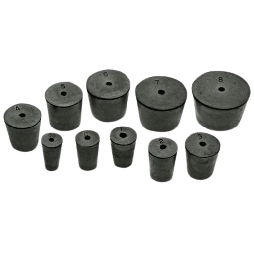 PSLabware Rubber Stoppers are made of solid natural rubber that stays pliable over a long period of time. Ideal for use with non-aggressive or concentrated solutions. Low sulfur content. Withstand temperatures from -25 to 70°C (-13 to 158°F). Available in solid, one-hole, and two-hole versions. Each stopper has its size marked in raised figures. All stoppers are 25 mm tall. Sold as one-pound bags.
