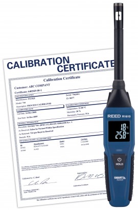 The Reed R1610 Bluetooth Thermo-Hygrometer is a compact thermo-hygrometer that measures ambient temperature and relative humidity. The instrument can be used either stand-alone or with the Reed Smart Series App (available for download on Android and iOS). When connected to the App, the R1610 can be set up to data log measurements over a given period.