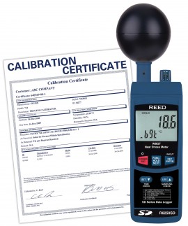 The Reed R6250SD Data Logging Heat Stress Meter measures temperature, humidity, and direct or radiant sunlight with Wet Bulb Globe Temperature (WBGT). With this information it determines the "What it feels like" temperature. The R6250SD is OSHA recommended with a user adjustable WBGT audible alarm and the ability to adjust settings for indoor temperature measurement. Featuring, Data hold, Max/Min functions, and an easy-to-read backlit LCD display. Using a SD card (max 16GB), a user can manually record up to 99 readings or automatically by selecting a desired sampling rate from 1 to 3600 seconds. Quickly generate an Excel file with raw data, all without the use of software. Optional accessories include a tripod and AC adapter for continuous long-term monitoring.