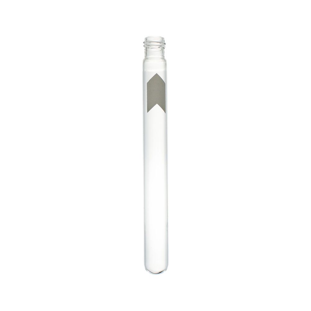 Dimensional tolerances are strictly controlled for a uniform shape, including rounded bottoms and polished tops with smooth edges. Each tube has a chevron-shaped white enamel marking spot. Threaded necks accept a phenolic screw cap, sold seperately. Available in six sizes, from 8 ml to 33 ml.