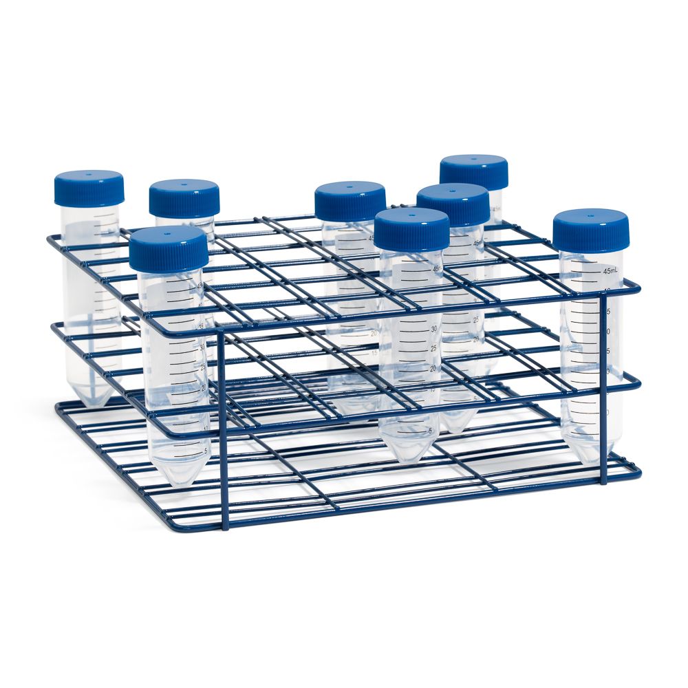 United Scientific™ Heavy-Duty Epoxy Coated Wire Racks are a full range of epoxy coated steel wire racks for tubes including 15ml and 50ml centrifuge tubes. The epoxy is a durable consistent coating, and the racks are a rigid construction. The racks are designed with 3 levels keeping the tubes secure; the rack bottom is slotted and helps center the tubes.
