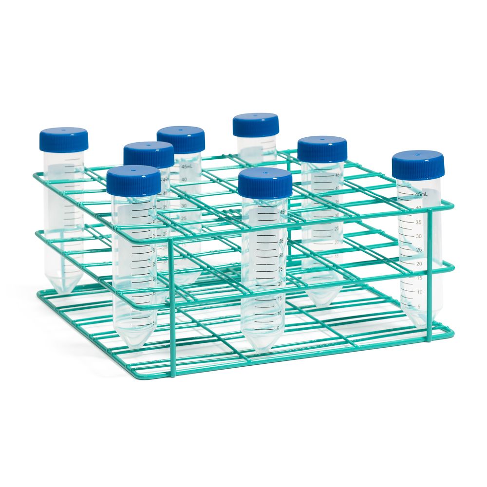 United Scientific™ Heavy-Duty Epoxy Coated Wire Racks are a full range of epoxy coated steel wire racks for tubes including 15ml and 50ml centrifuge tubes. The epoxy is a durable consistent coating, and the racks are a rigid construction. The racks are designed with 3 levels keeping the tubes secure; the rack bottom is slotted and helps center the tubes.