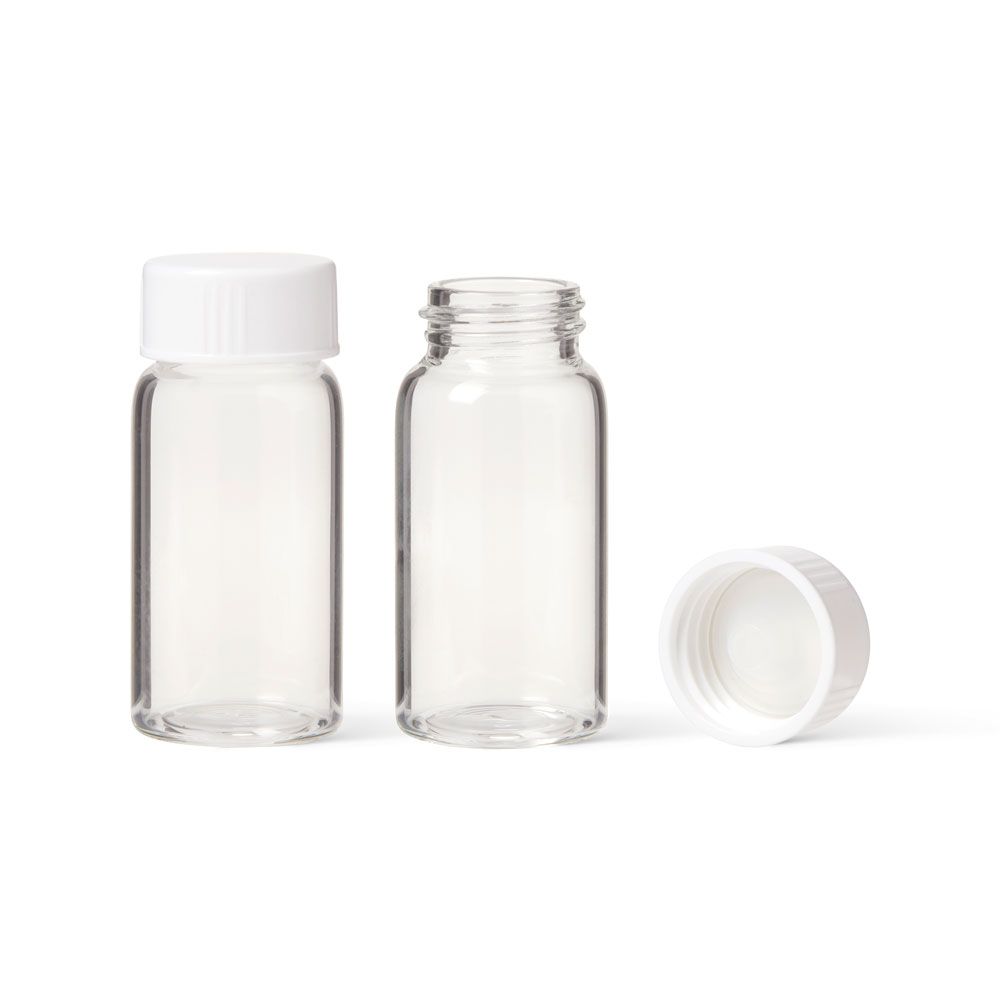 United Scientific 20ml Scintillation Vials provide low and consistent background counts and have high ultraviolet transmission. Precise manufacturing tolerances ensure dependable and consistent performance for scintillation counting; the vials load smoothly into counting machines without the risk of jamming or breaking. Vials are made from borosilicate glass that meets ASTM Type I, Class A, and USP Type I standards. Included white caps fit securely and can be labeled for easy sample identification.